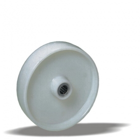 Колеса серии RPR изготовлены из большегрузного полиамида белого цвета, отлитого под давлением. В оси колеса два шариковых подшипника с распорной втулкой.