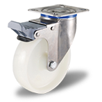 Поворотная колесная опора с тормозом в кронштейне из нержавеющей стали c колесом из белого полипропилена